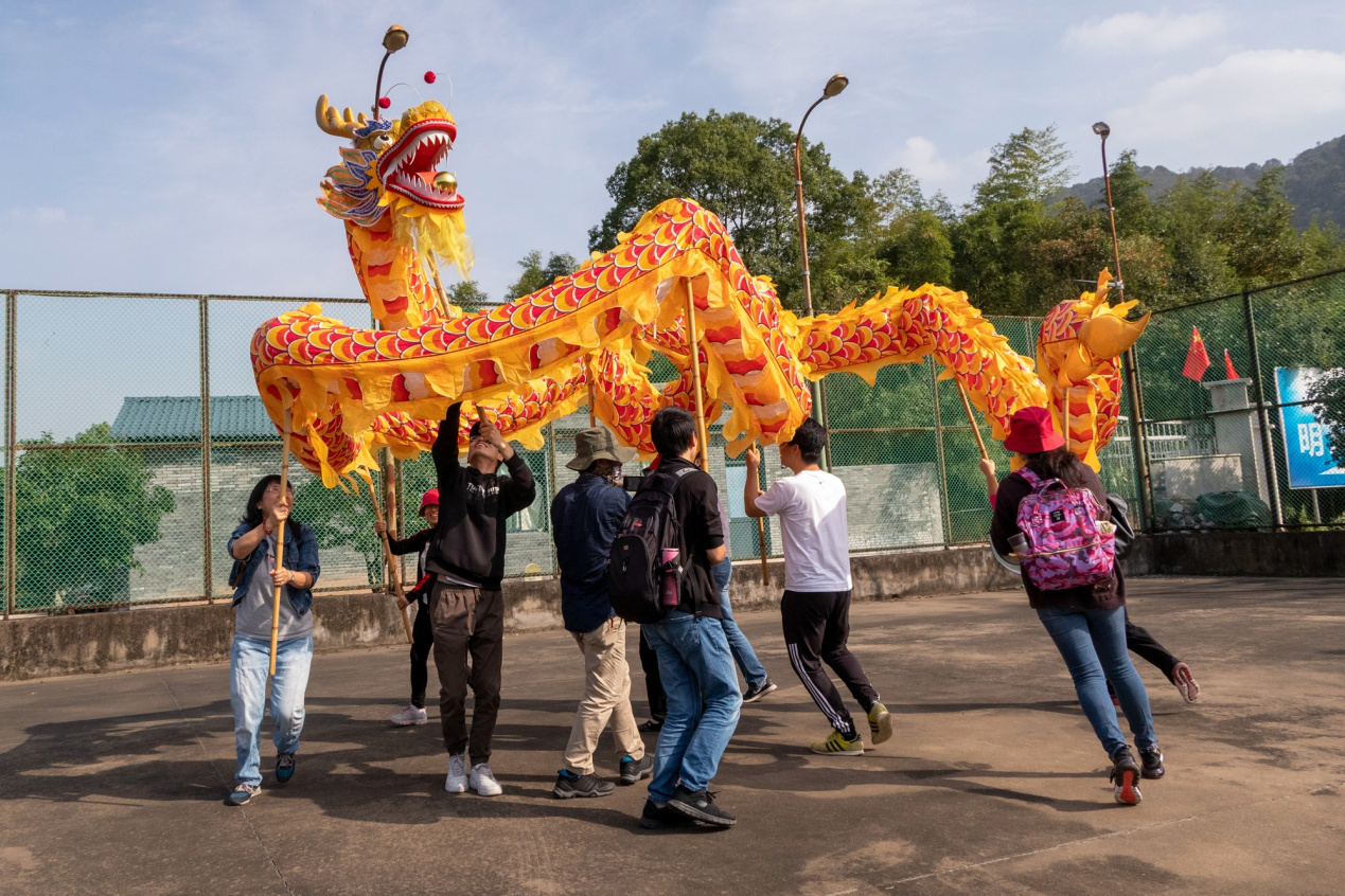 活动当天,秋高气爽,晴空万里。来到龙观乡,大家边参观边学习,了解当地的文化风貌,先后参观了半山交坑大峡谷、橘园和海曙诚安粮油食品公司,并体验了一把当地的特色舞龙活动,深入感受到了新农村建设所取得的良好成果。这里有优美的居住环境和良好的配套设施,乡风文明、村容整洁。