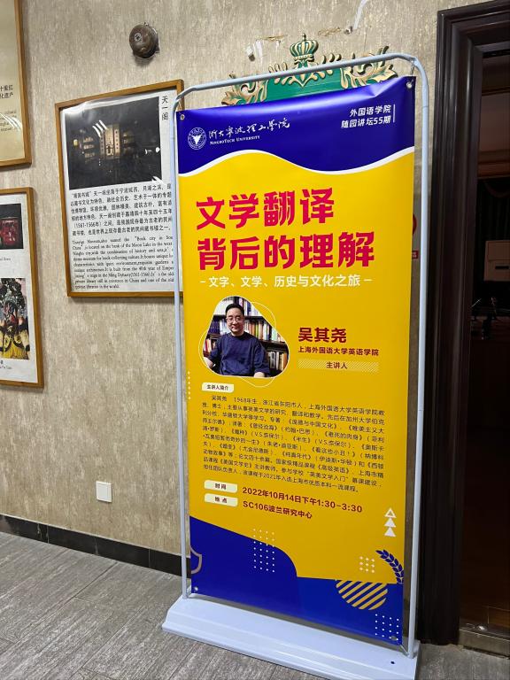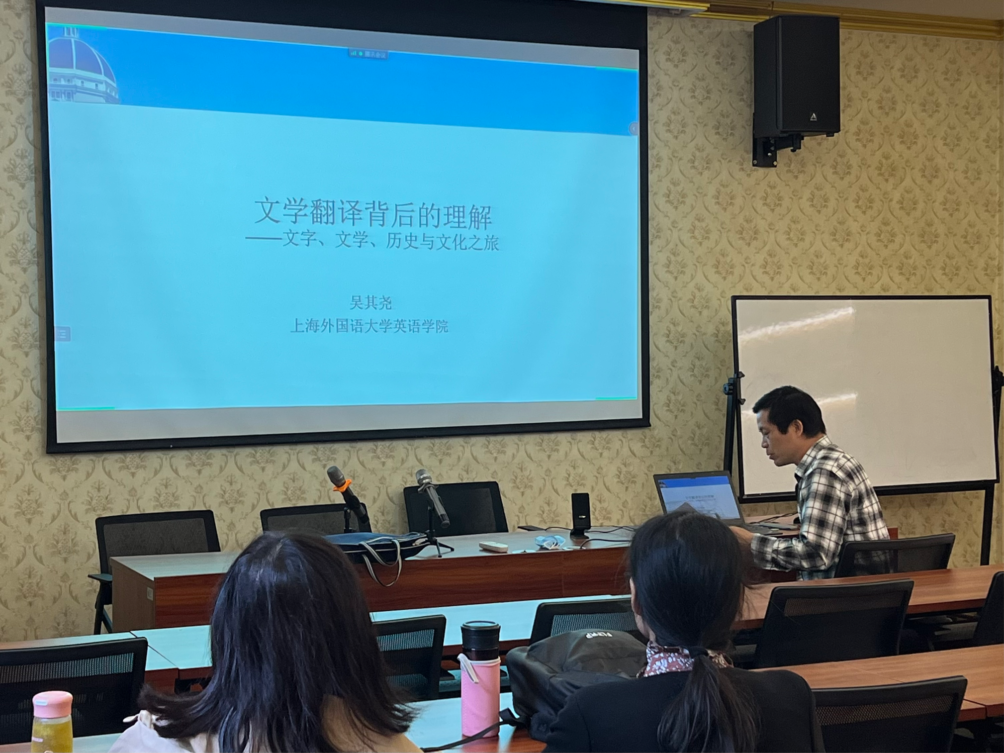 2022年10月14日下午,上海外国语大学吴其尧教授应邀为学院师生做了题为“文学翻译背后的理解——文字、文学、历史与文化之旅”的精彩学术讲座,此次讲座也是外国语学院随园讲坛的第55期。本次线上线下相结合的学术活动由外国文学与比较文学研究所所长周汶主持。