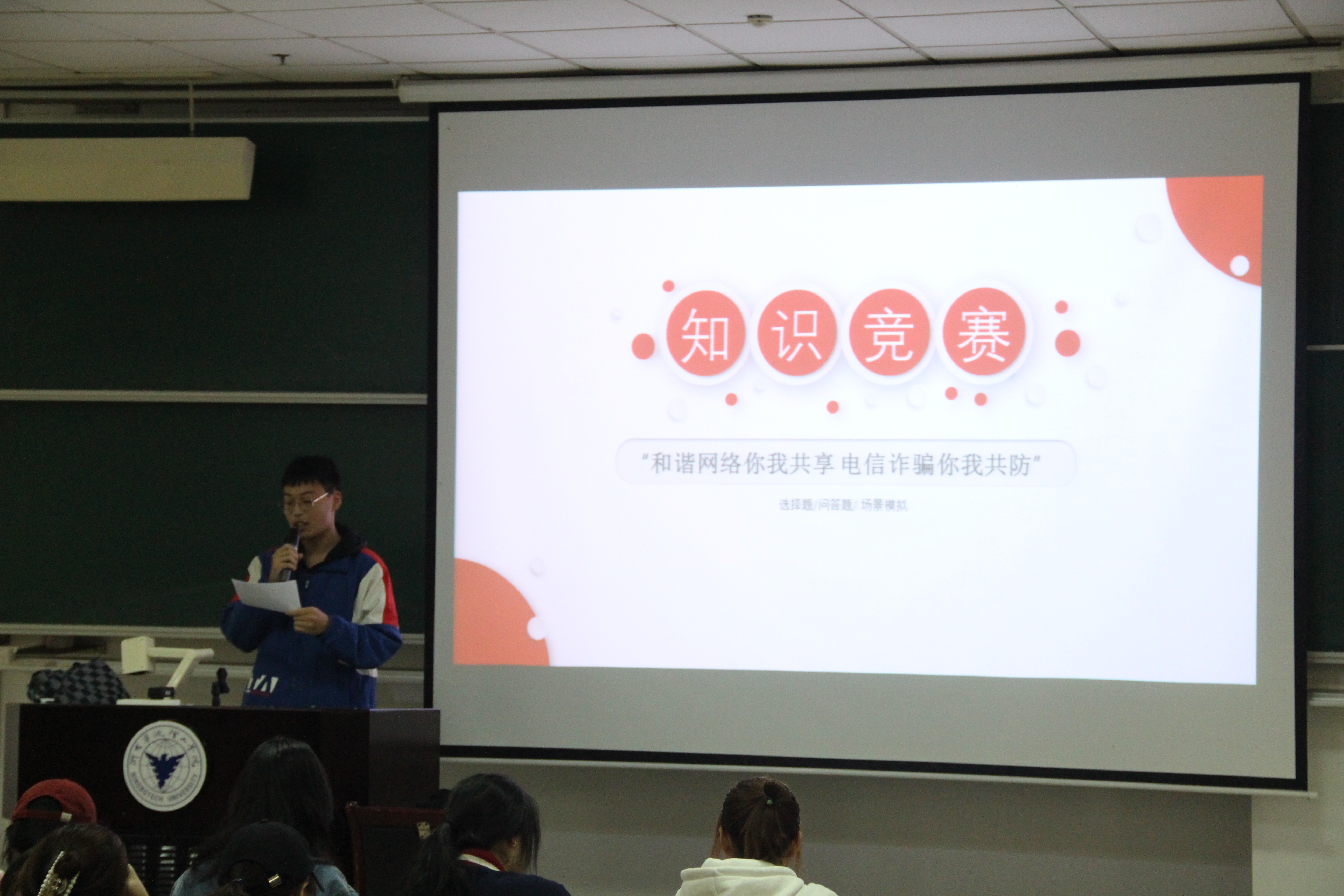 11月20日下午,外国语学院反电信诈骗知识竞赛在NF101举行,30余名同学参加了比赛。