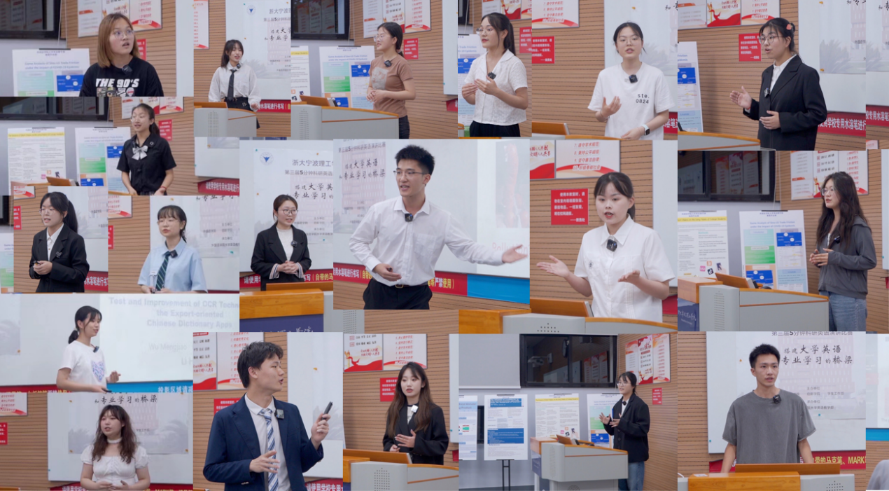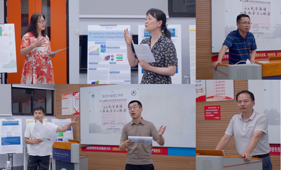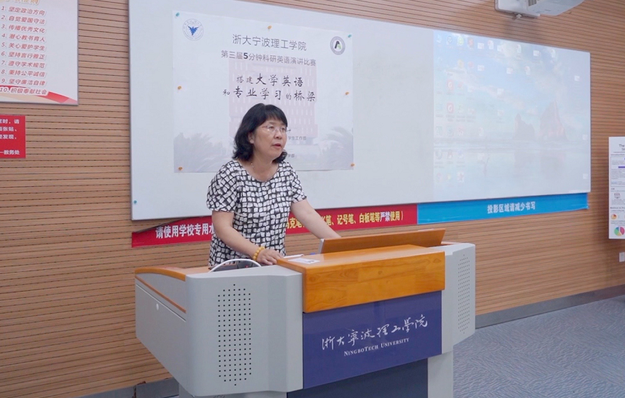 6月26日,2022年“第五届中国大学生5分钟科研演讲(英语)大赛”浙大宁波理工学院赛区选拔赛暨浙大宁波理工学院第三届“5分钟科研英语演讲大赛”现场复赛在北教学区NB108教室隆重举行。本次比赛由外国语学院、启新学院与学生工作部联合主办,外国语学院大学英语教学部承办。特邀评委有:外国语学院党委副书记(主持工作)傅晓宇、启新学院副院长廖海鹏、学生工作部副部长赵涵、商学院副院长鞠芳辉、传媒与法学院副院长韩缨、土木建筑工程学院副教授马佳星、外国语学院英语系主任孙广平和外国语学院大学英语教学部主任张静燕。
