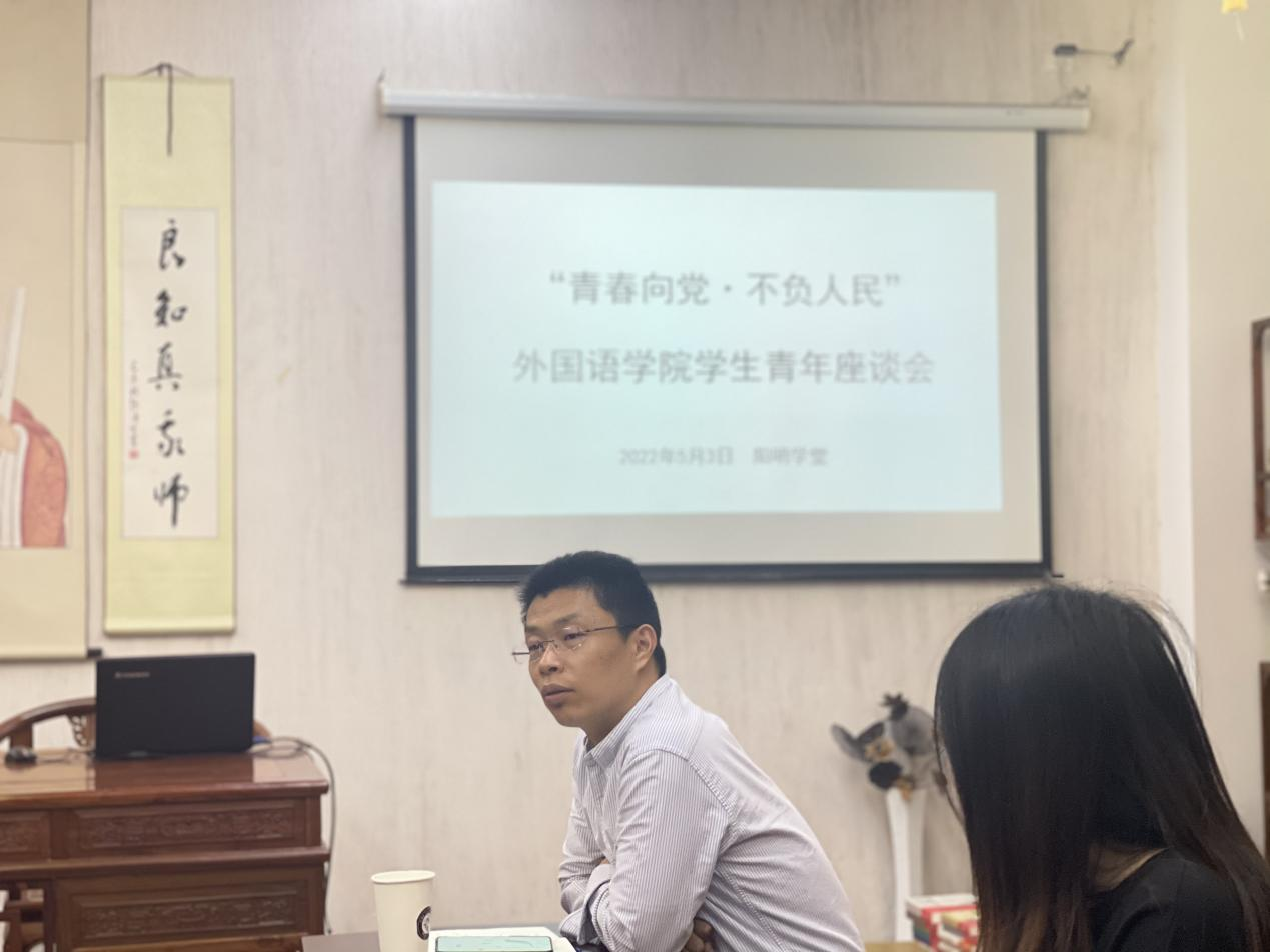 5月3日晚上,外国语学院在阳明学堂召开了主题为“青春向党·不负人民”的学生座谈会,共同交流学习习近平总书记在视察中国人民大学时的重要讲话精神。学院党委副书记、纪委书记任凯、辅导员张弦和学院学生组织负责人、学生代表共同参加了座谈。