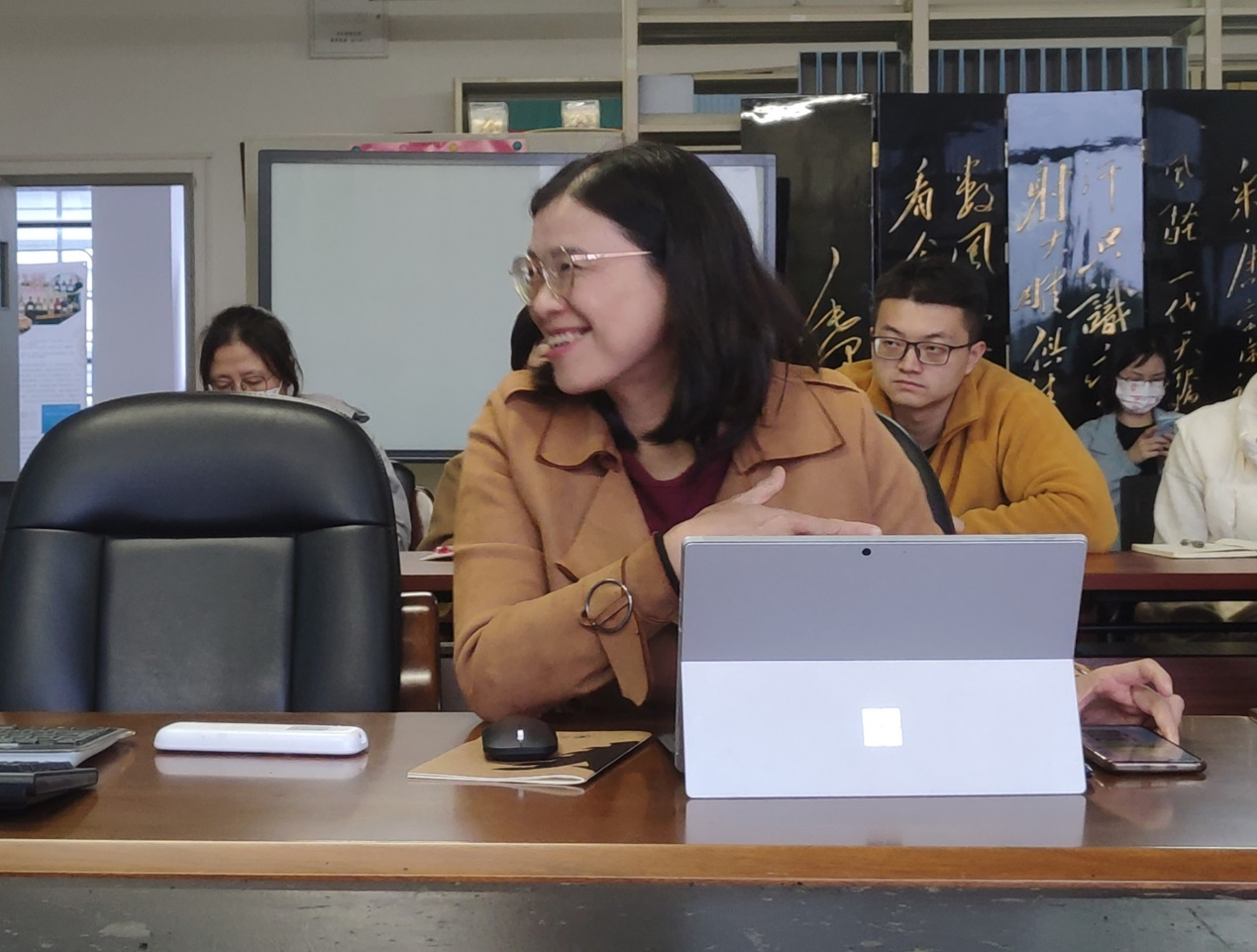 在讨论环节中,英语系王凌老师、日语系余祎延老师分享了本学期使用《理解当代中国》系列教材的心得。两位老师表示《理解当代中国》系列教材的编排内容和理念契合“立德树人”的人才培养方向,有利于践行“如何培养人、培养什么样的人”的教育发展理念,可以充分发挥外语课程思政全员育人、全程育人、全方位育人的效果。大学外语部的相关教师也参加了本次活动,他们认真听取两位老师的分享,积极思考“三进”系列教材与大学英语教学的有效融合的问题。来自马院的王心月老师也分享了他的教学经验。他提到,在“三进”工作的推进中,学生不仅要阅读体现思政教育的书本知识,还要从书本的学习进行延展,努力研读红色经典原作。他还特别建议阅读中英文对照版的红色经典著作。他的建议引起了在场英语专业教师的极大共鸣。