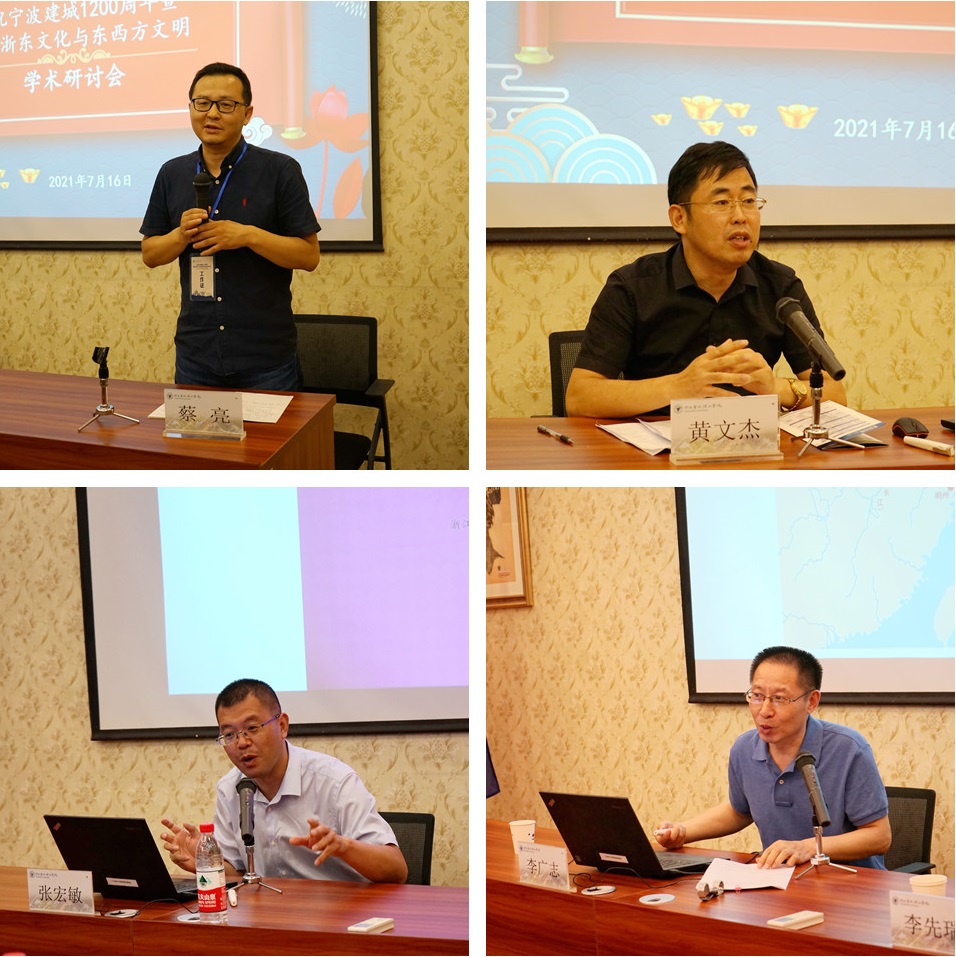 下午的研讨会环节分为浙东文化与东方文明主题、浙东文化与西方文明主题两个版块。分别由浙大宁波理工学院外国语学院教授李先瑞、副教授孙广平主持。宁波大学外语学院副教授李广志、资深宁波文史研究者水银、宁波市文化遗产管理研究院副研究员许超、宁波海关胡丕阳、浙大宁波理工学院法传学院副教授王军伟、浙大宁波理工学院外国语学院讲师韩娜、阮征,浙大宁波理工学院马克思主义学院博士王忠敬等作了精彩分享。