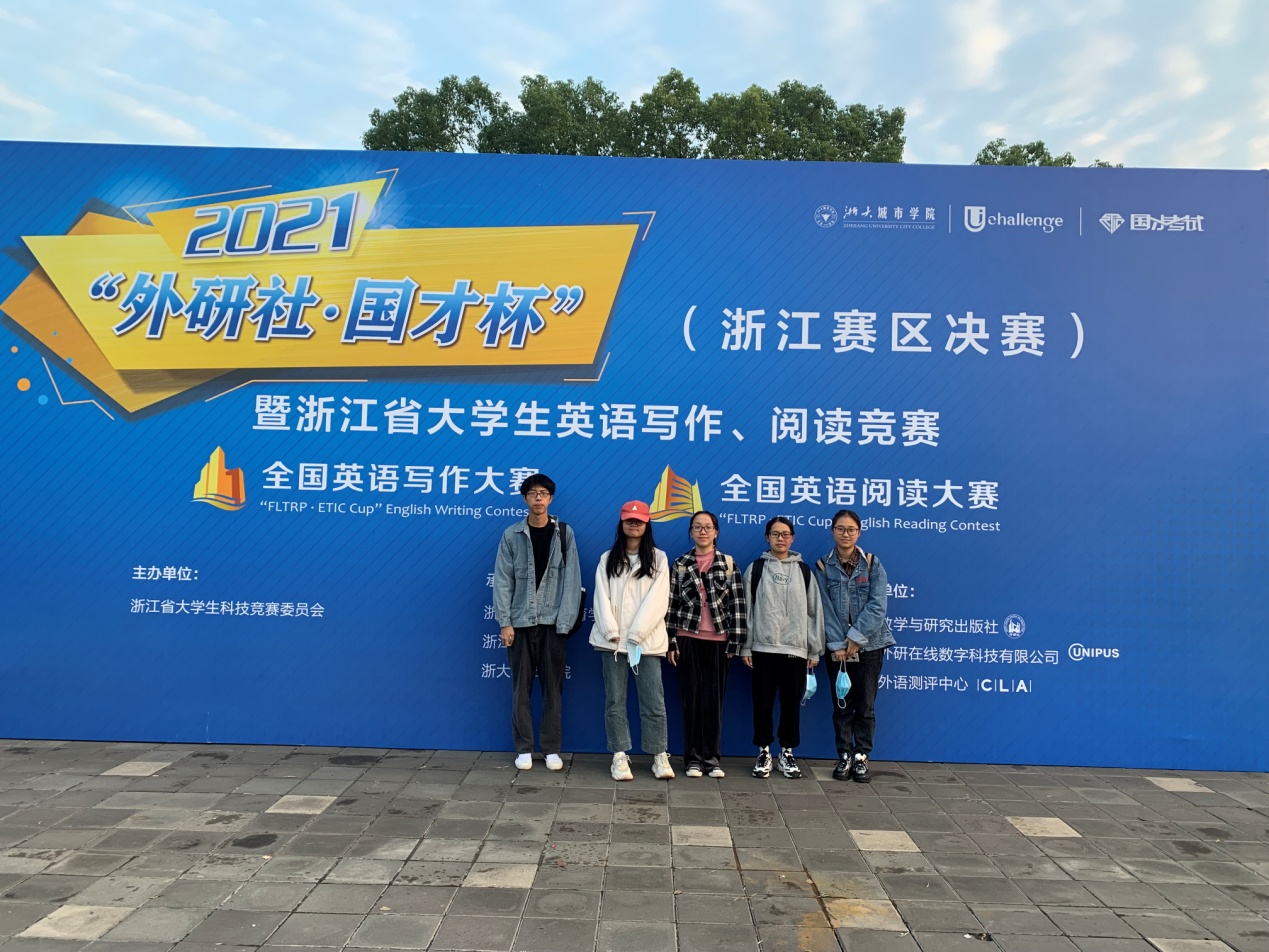 2021年10月23日,第九届浙江省大学生英语写作竞赛暨2021外研社·国才杯全国英语写作大赛在浙大城市学院举行,来自全省55所高校的268名选手参加了比赛,我校外语学院王炜鑫和严瑜婕同学表现出色,分别获得浙江省二等奖和三等奖。