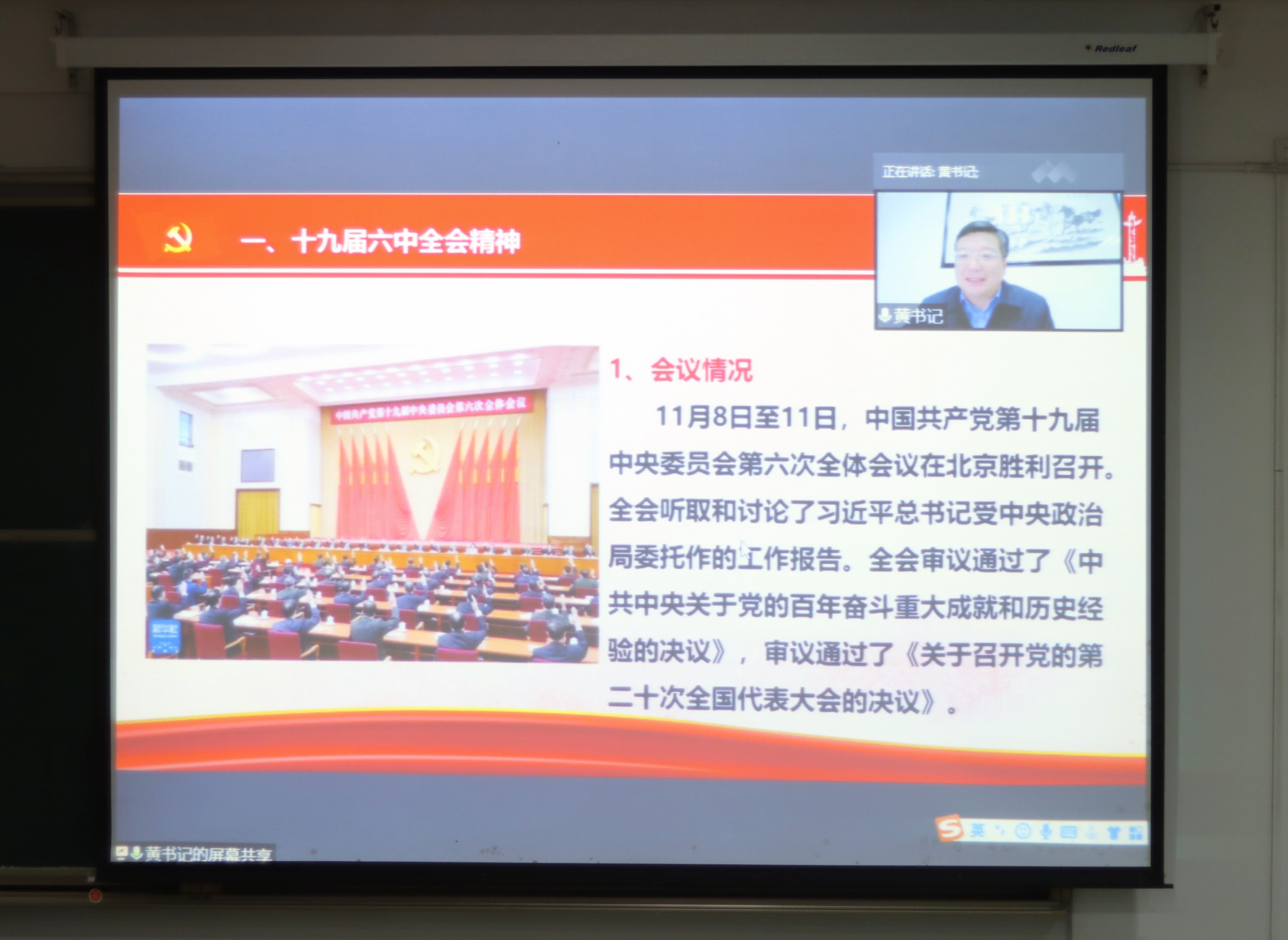 12月21日,浙大宁波理工学院党委委员、纪委书记黄光杰为外国语学院全体21级新生开展了一堂主题为“学习十九届六中全会精神 做新时代奋进者”的形势与政策课,课程全程通过网络在线的形式展开,外国语学院党委副书记任凯和辅导员张弦参与了本次讲座。