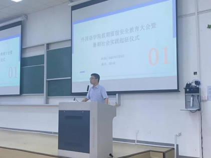2021年7月5日,外国语学院于SB102召开学生假期留宿安全教育大会暨暑期社会实践起征仪式。