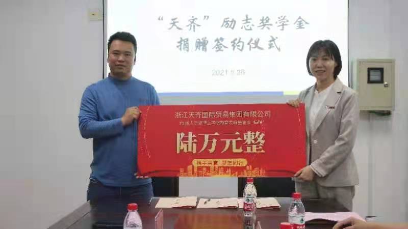 5月26日下午,“天齐”励志奖学金捐赠签约仪式在外国语学院SC403会议室举行,浙江天齐国际贸易集团有限公司总经理童俭丞及相关部门负责人,学校招生就业处副处长、教育发展基金会秘书长陈美芳,外国语学院党委副书记(主持工作)、副院长傅晓宇,学院副院长蔡亮,学院副院长周汶,学院党委副书记、纪委书记任凯及教师代表参加了此次签约仪式。