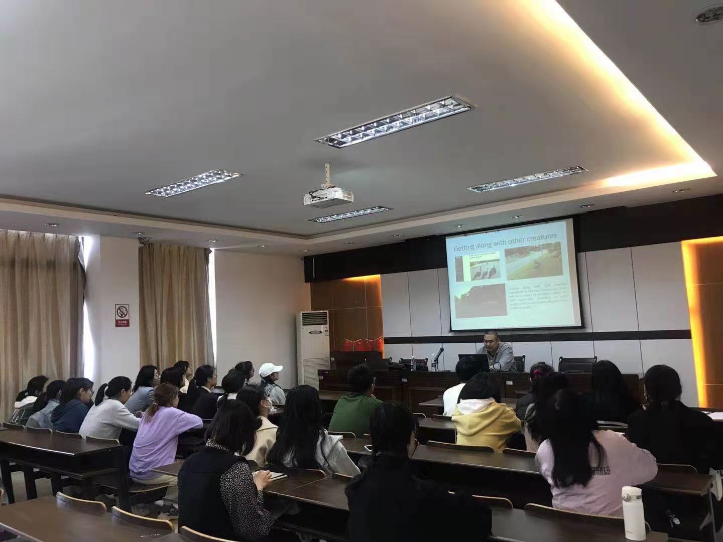 讲座伊始,张老师以个人丰富的科研经历以及独特的研究方向引出本次讲座的主题——跨学科追求海外科学研究与生活之路。照顾到大部分讲座参与同学是文科专业,他首先采用了图片、视频的形式来分享自己在哈佛大学的研究经历与学习生活,介绍了自己在哈佛医学院中国科学家学者协会的科研经历,为整场讲座奠定了轻松的基调,使同学们可以在轻松的讲座氛围中收获大量的信息。