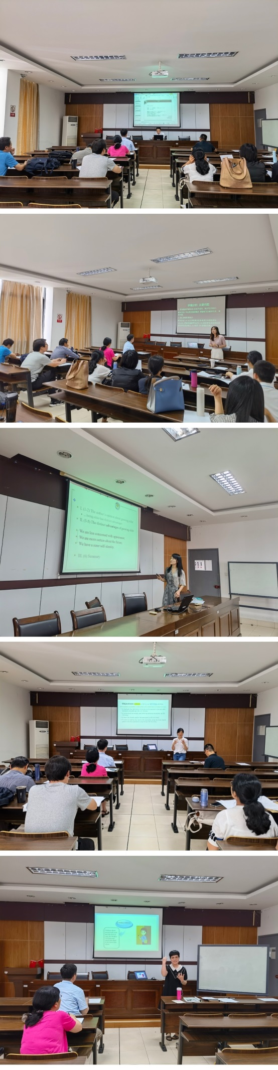 在学院的积极宣传动员下,来自英语、日语专业和大学英语教研组的5位青年教师参加了比赛,占学院青年教师总数的45.45%。学院党委副书记(主持工作)傅晓宇、学院副院长周汶、学院党委副书记任凯等8名教学委员会成员和学院分工会主席叶琴法担任比赛评委。本次活动由周汶主持。