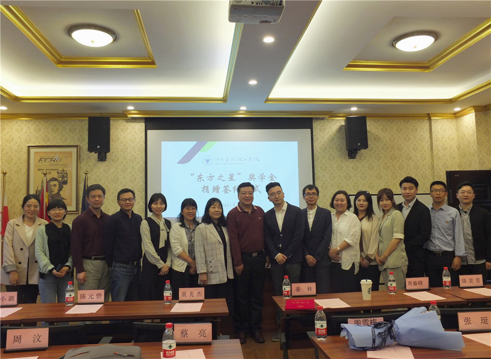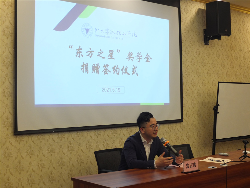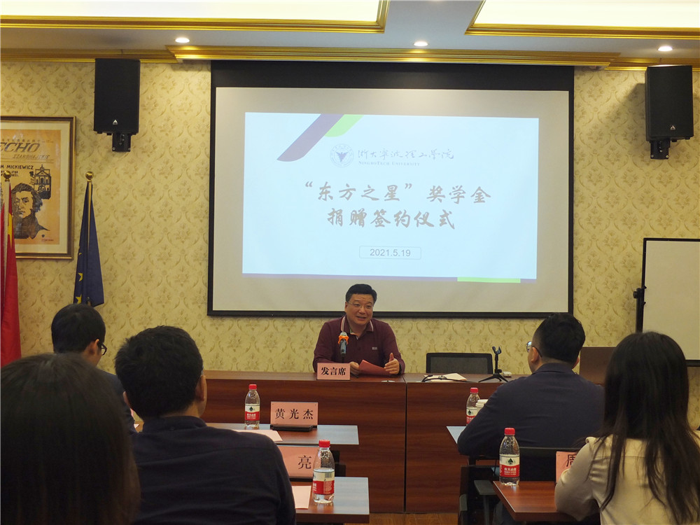 5月19日下午,浙大宁波理工学院“东方之星”奖学金捐赠签约仪式在波兰研究中心隆重举行。宁波新东方学校校长秦林、宁波新东方国际教育培训中心总经理陈元骅、宁波前途留学公司总经理张珽及宁波新东方学校各部门主管,浙大宁波理工学院纪委书记黄光杰、招生就业处副处长兼教育发展基金会秘书长陈美芳、团委书记兼学工部副部长周春晓、外国语学院院长王小潞、外国语学院党委副书记(主持工作)兼副院长傅晓宇、外国语学院副院长蔡亮、外国语学院副院长周汶及师生代表参加了捐赠仪式。仪式由外国语学院党委副书记、纪委书记任凯主持。