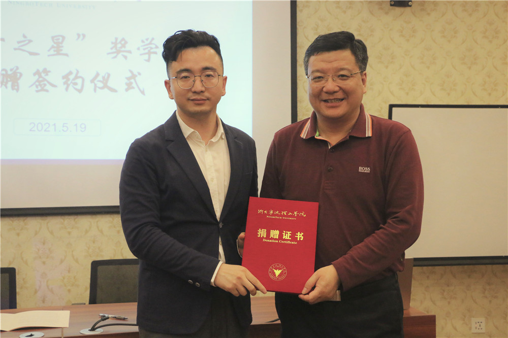 黄光杰为宁波新东方学校颁发了捐赠证书