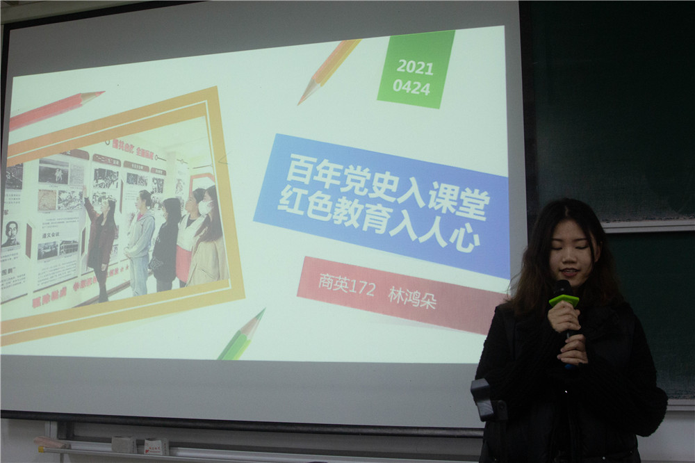 第三场周赛由外语学院的30位学生党员带来了自己的微党课作品,他们分别以《忆峥嵘岁月,显青春风采》、《论党史教育的时代意义》、《初心在身边,红船驶进新时代》、《科技兴农,帮助老乡实现小康》、《用“三牛”精神开创伟业》等为题,面向80余位青年团员开展宣讲。