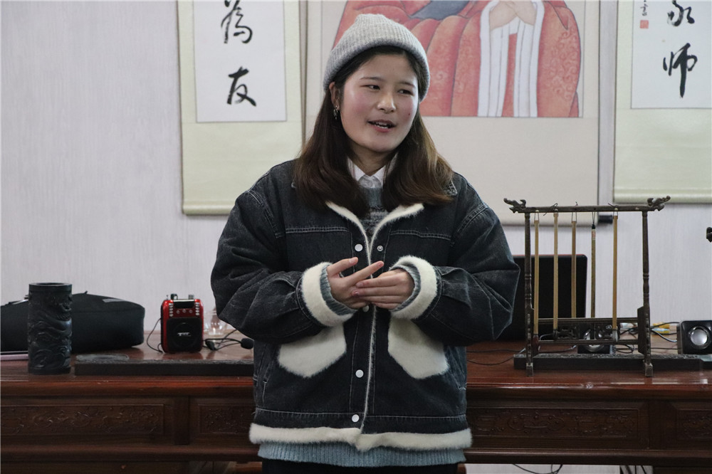 外国语学院团委书记芦美丽老师介绍阳明文化宣讲团与高校“行学至善”文化育人模式的实践理念。