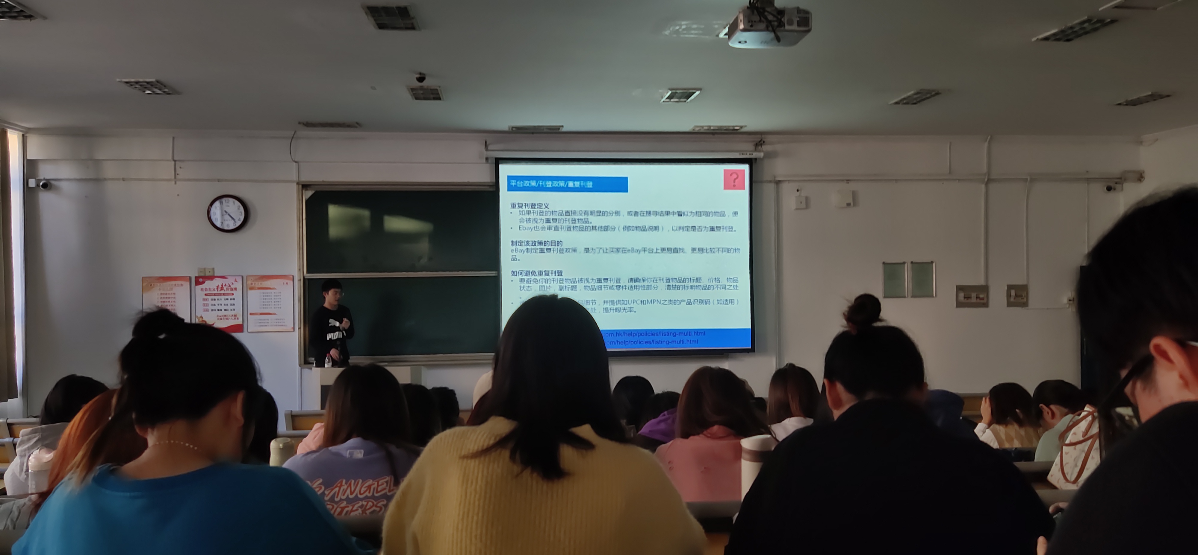 11月3日,浙大宁波理工学院外国语学院组织的跨境电商企业人员专题系列讲座第二场如期举办,此次讲座邀请国际电商平台eBay的官方培训师朱嘉恩作主讲人,他拥有丰富的跨境电商从业经验。英语和商务英语专业的学生参加了此次讲座。