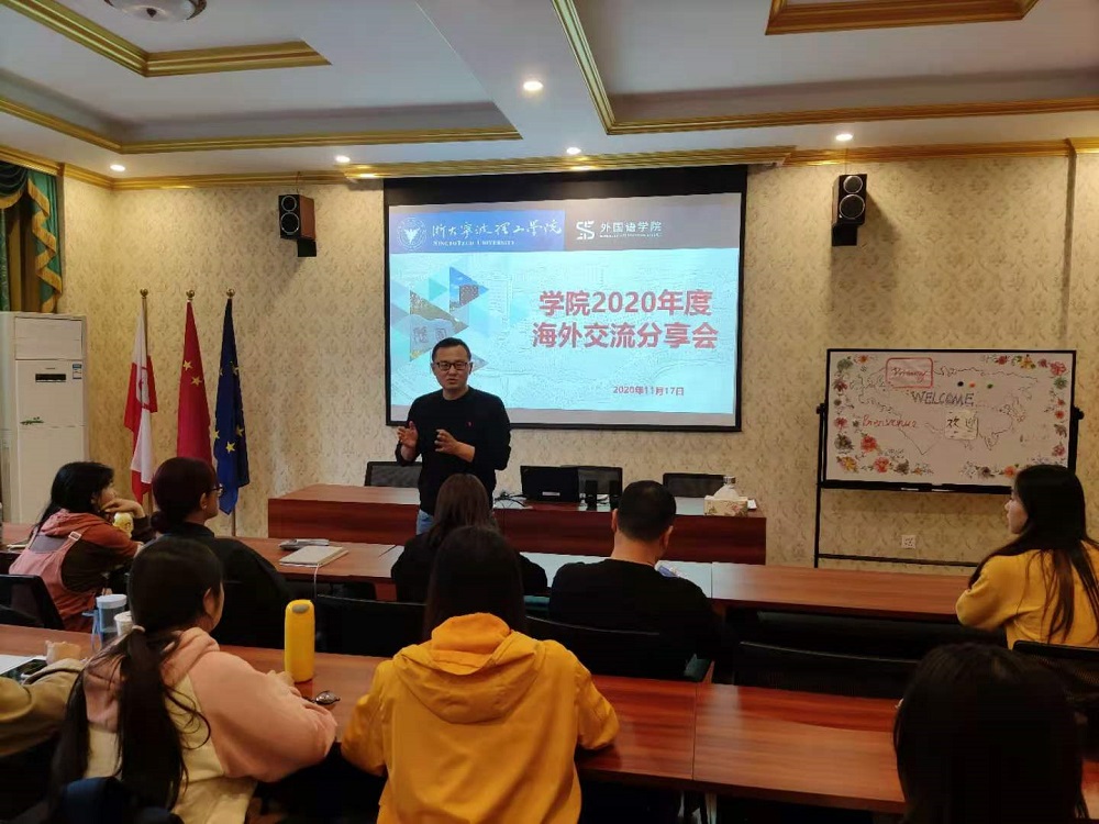 11月17日下午3:30,外国语学院在SC106波兰研究中心举办了2020年度师生海外留学交流分享会,学院副院长蔡亮教授、学院海外项目协调人林晶晶老师、2020年赴海外学习的师生代表和有意向赴海外留学的外语学子参加了此次会议,会议由学院外事秘书郑巍主持。