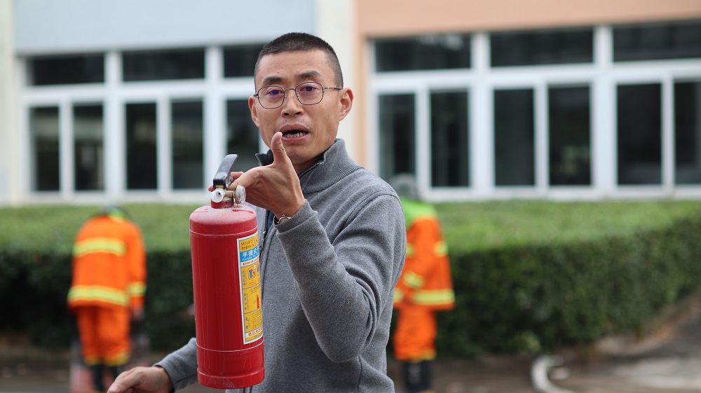 演练前,师生们在引导员教师和学生带领下,沿着逃生路线迅速有序撤离。随后,师生们疏散至学校金工车间旁空地处继续开展消防演练。演练中,燕永波结合身边案例讲解了预防火灾和火场逃生的基本知识,并强调了火灾应急逃生的路线选择原则和其他重要注意事项。他指导大家如何正确使用灭火器,演练也安排了灭火器实操环节。教师代表和学生代表参与积极,纷纷尝试。