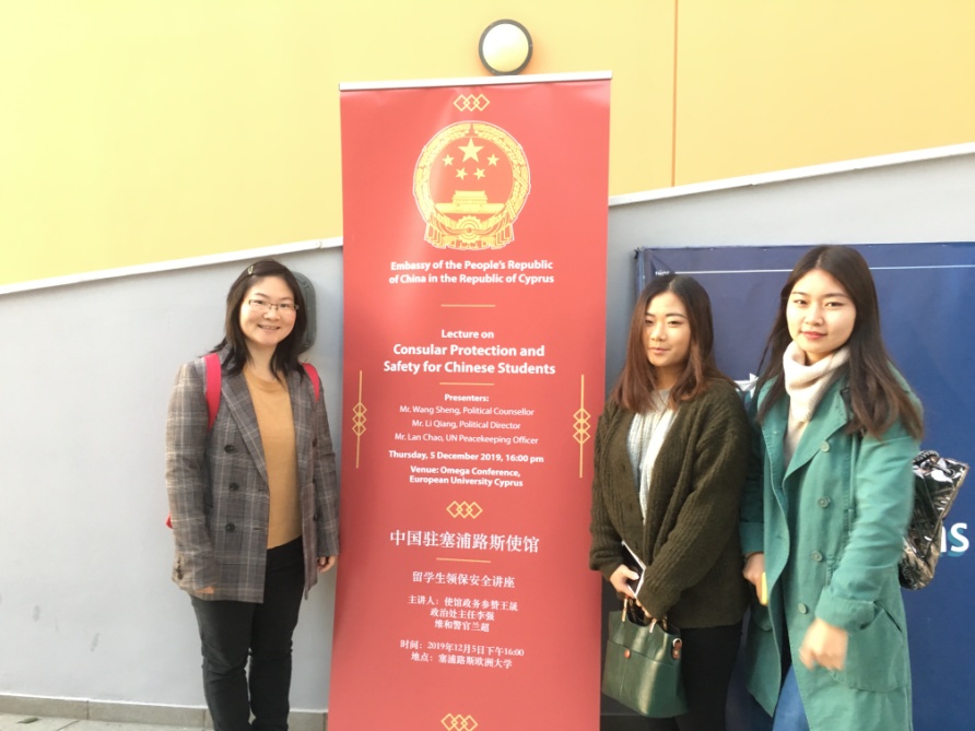 12月5日,与塞浦路斯多所高校留学生共同参加了中国驻塞大使馆组织的留学生领保安全讲座。学习了留学安全知识,增强了自我防范意识,结识了更多的留学生朋友。