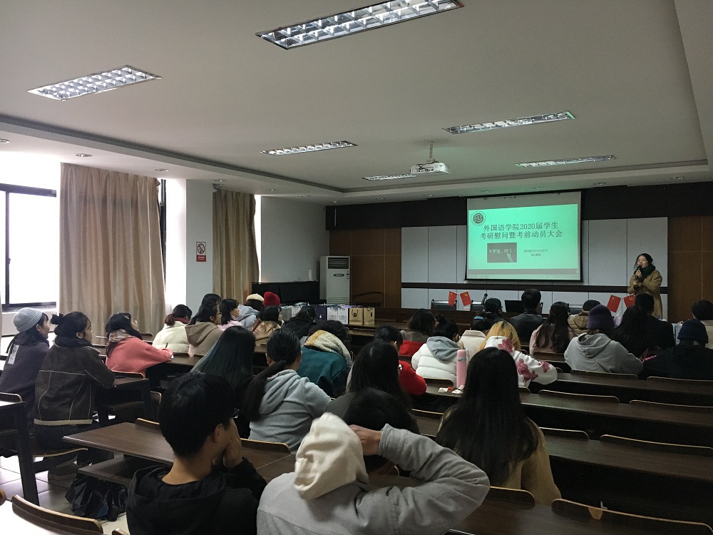 外国语学院近几年高度重视学生考研工作,对高年级及考研学生进行了分阶段、有针对性的动员和指导,举办了各种讲座、考研经验交流会等活动。据统计,2020届有45人报考国内研究生,报考比例达24.73%,预祝同学们取得理想的成绩。