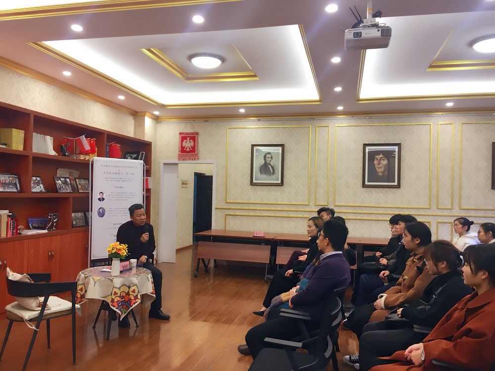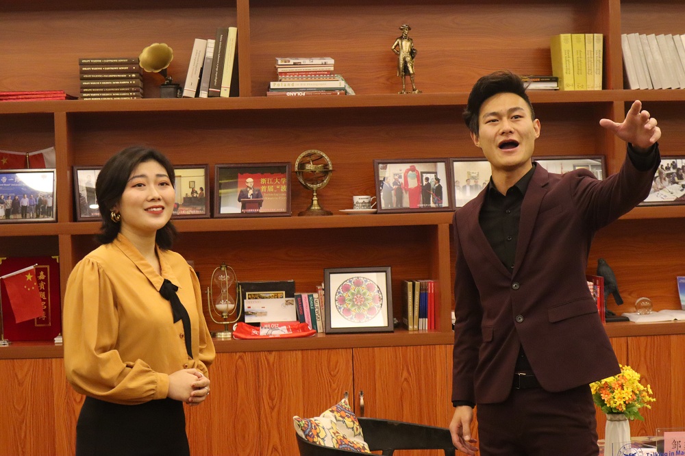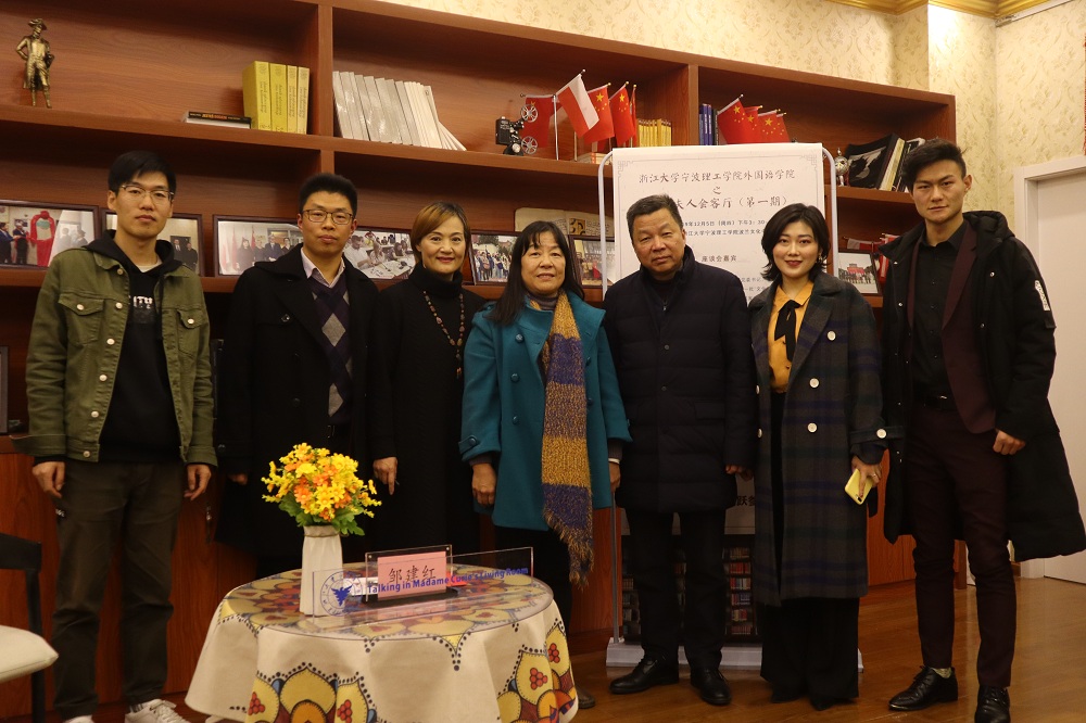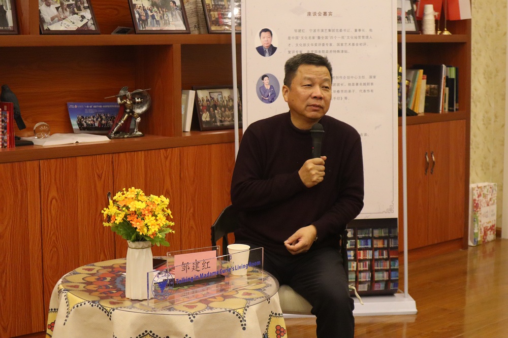 浙江大学宁波理工学院“波兰研究中心”是教育部批准的国别与区域研究中心,聚焦波兰文化,探讨中波交流,“居里夫人会客厅”是该校举办的第二届“波兰周”最后一项重大活动。邹建红从2015年12月赴瑞典为屠呦呦领奖之行策划举办系列演出活动开始讲起,讲他如何被屠教授的人格魅力和精神所打动,下决心要将屠呦呦的精彩故事“搬”上舞台;讲歌剧《呦呦鹿鸣》创作和演出团队如何用“匠心”打磨出了浙江省历史上首部原创的宁波本土民族歌剧;讲《呦呦鹿鸣》演出时群众的热烈反映和影响。他语重心长地告诉大学生们,“只有个人目标与祖国发展相呼应,才能更好地实现人生价值。”在讲述过程中,《呦呦鹿鸣》的两位年轻演员还现场演绎了歌剧中的精彩片段,观众们听的是聚精会神,好多位同学眼眶湿润。活动结束后,学生们的朋友圈掀起了一股了转发活动照片和视频的高潮。