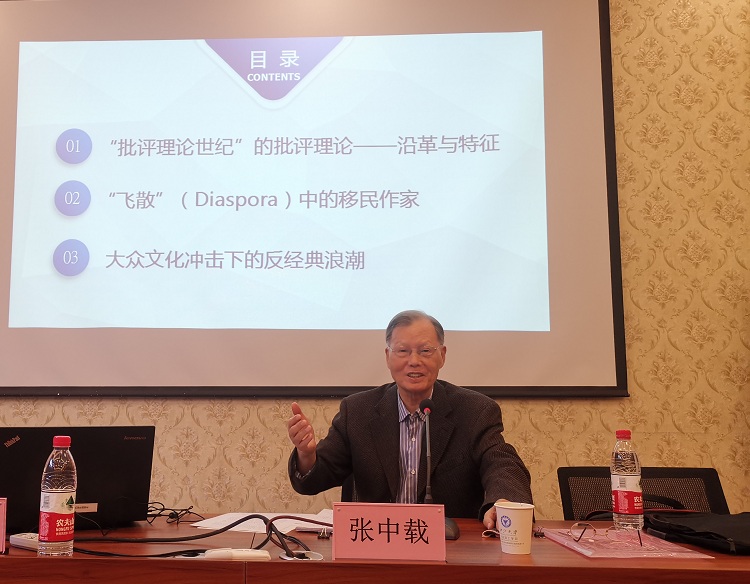2019年10月24日下午,北京外国语大学英语学院教授、博士生导师张中载先生在浙江大学宁波理工学院波兰研究中心作题为“百年变革中的英语文学(1919-2019)”的学术讲座。本次讲座是随园讲坛第四十二期,由外国语学院副院长周汶主持。