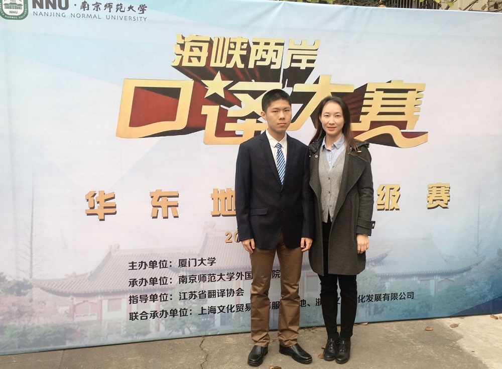 谢天一同学向来对口译有着浓厚的兴趣,曾经参加过在杭州举办的LSCAT全国口译大赛,并荣获二等奖。赛前他在林老师的指导下进行了刻苦的备战训练。此次比赛让他得到了充分的锻炼并认识到自己的不足,赛后他表示要再接再厉,勇创佳绩。