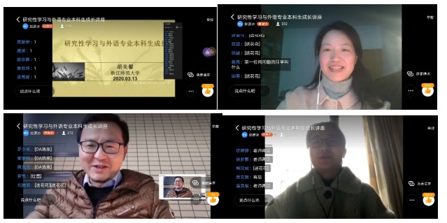 2020年3月13日下午,浙江师范大学外国语学院院长、教授、博士生导师胡美馨教授受邀为我院330余名师生作了题为“研究性学习与外语专业本科生成长”专题讲座。因处于疫情特殊时期,讲座以钉钉直播的模式开展,由我校外国语学院副院长蔡亮教授主持。