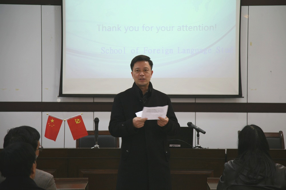 12月27日中午,外国语学院在SC405会议室召开了2019年度中层领导干部述职述廉会议。学校党委副书记黄光杰、组织部组织员谌晓煜老师和学院全体教师参加了此次会议,会议由学院院长王小潞主持。