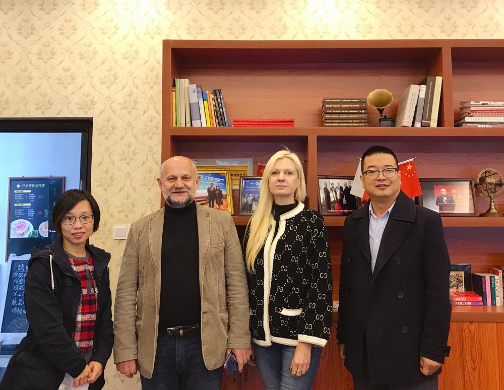 2019年11月19日上午,来自拉脱维亚的楚希吉(宁波)创意设计有限公司教育文化合作中心负责人,楚希吉(Sigita Truksane)女士和她来自于立陶宛的工作伙伴Algis Bertonas先生到访我校波兰研究中心。波兰研究中心副主任胡海鹏老师和主任助理阮征老师在SC106接待了来宾。