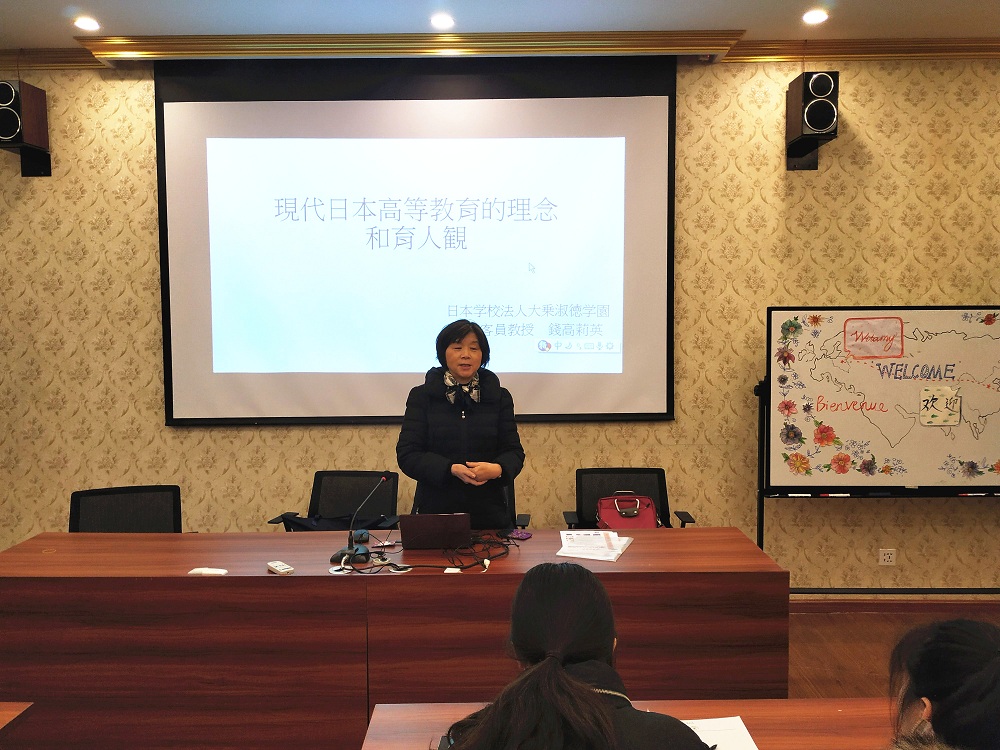 此次钱高莉英校长在SC106波兰研究中心,特地为我校日语专业学生作了一堂“现代日本高等教育的理念与育人观”的讲座。她以日本淑德大学近几年在海内外选拔优秀学生攻读硕士学位的趋势,指出目前日本的高等教育制度,尤其是研究生教育制度也出现了很大的变化,在学生入学选拔时,更加注重对学生的逻辑、创新能力的考核,并在研究生培养方面的育人观念发生了很大的变化。在讲座中,钱高莉英校长还特别科普给大家一个有关“研究生”的小常识,她提到在中文里的“硕士学位”在日语中的翻译是“修士学位”,而在日语中确实有三个日本汉字组成的“研究生”这个单词,但其意思是完全不一样的,日语中“研究生”是预科生(旁听生,非正式生)的意思。希望同学们以后在申请攻读日本高校的硕士或博士时特别要留意一下。