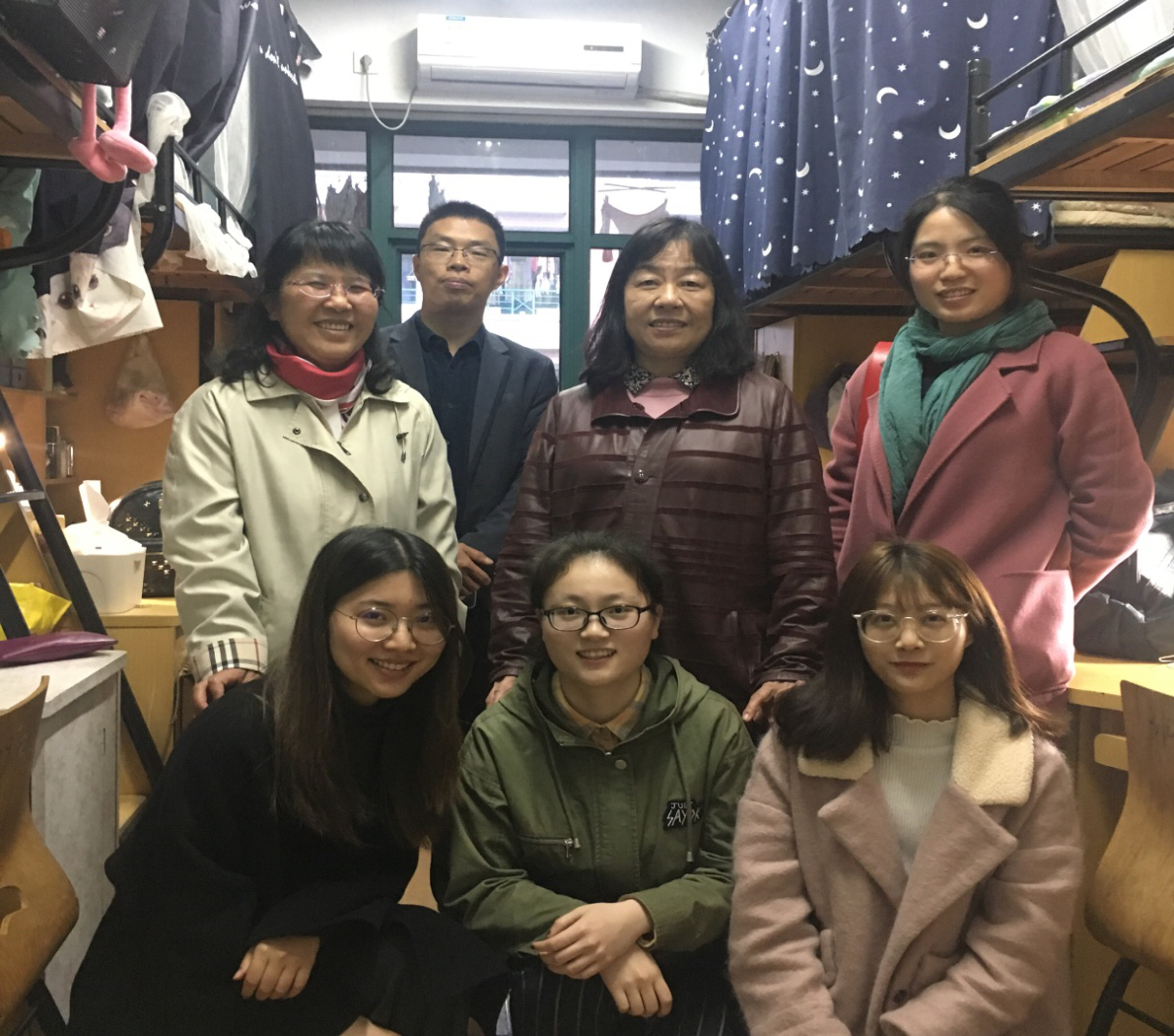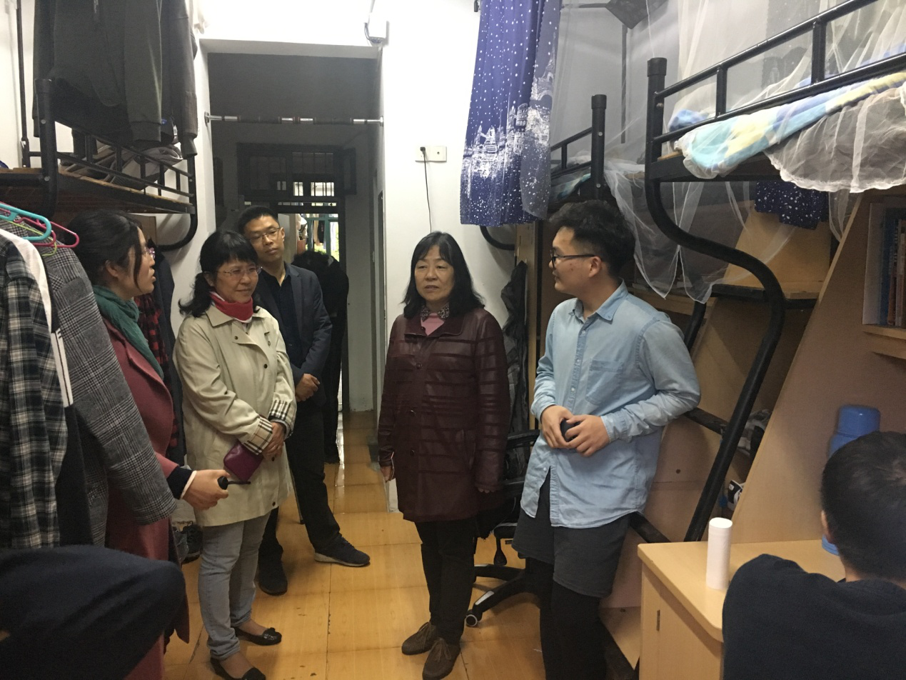 4月11日下午5时,外国语学院院长王小潞,党委副书记傅晓宇、任凯,以及各辅导员老师一行深入9幢、17幢等学生公寓楼,亲切看望学生,调研指导文明寝室建设工作。