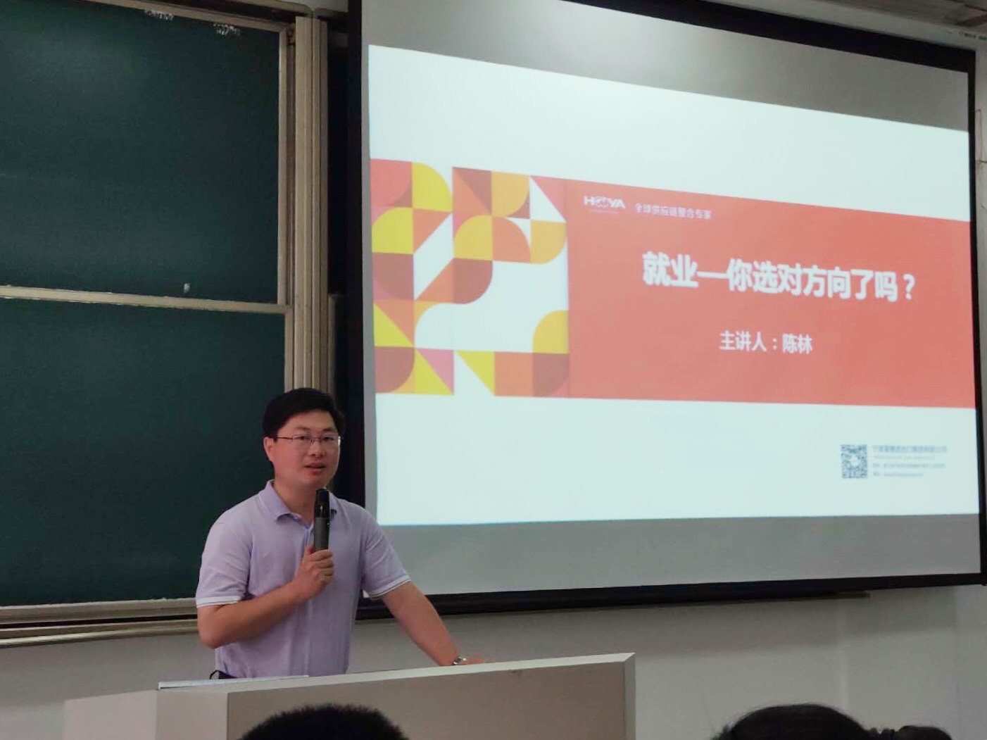 最后,豪雅集团的陈先生以“就业——你选对了吗”为主题,向学生们阐述了就业环境的面面观,行业发展与求职技巧等,另外,他还给同学们介绍了豪雅集团的发展及人才需求现状,并鼓励同学们调整好心态,积极就业。他略带幽默的讲述和对就业问题深入的剖析赢得了同学们热烈的掌声,同学们表示受益匪浅。