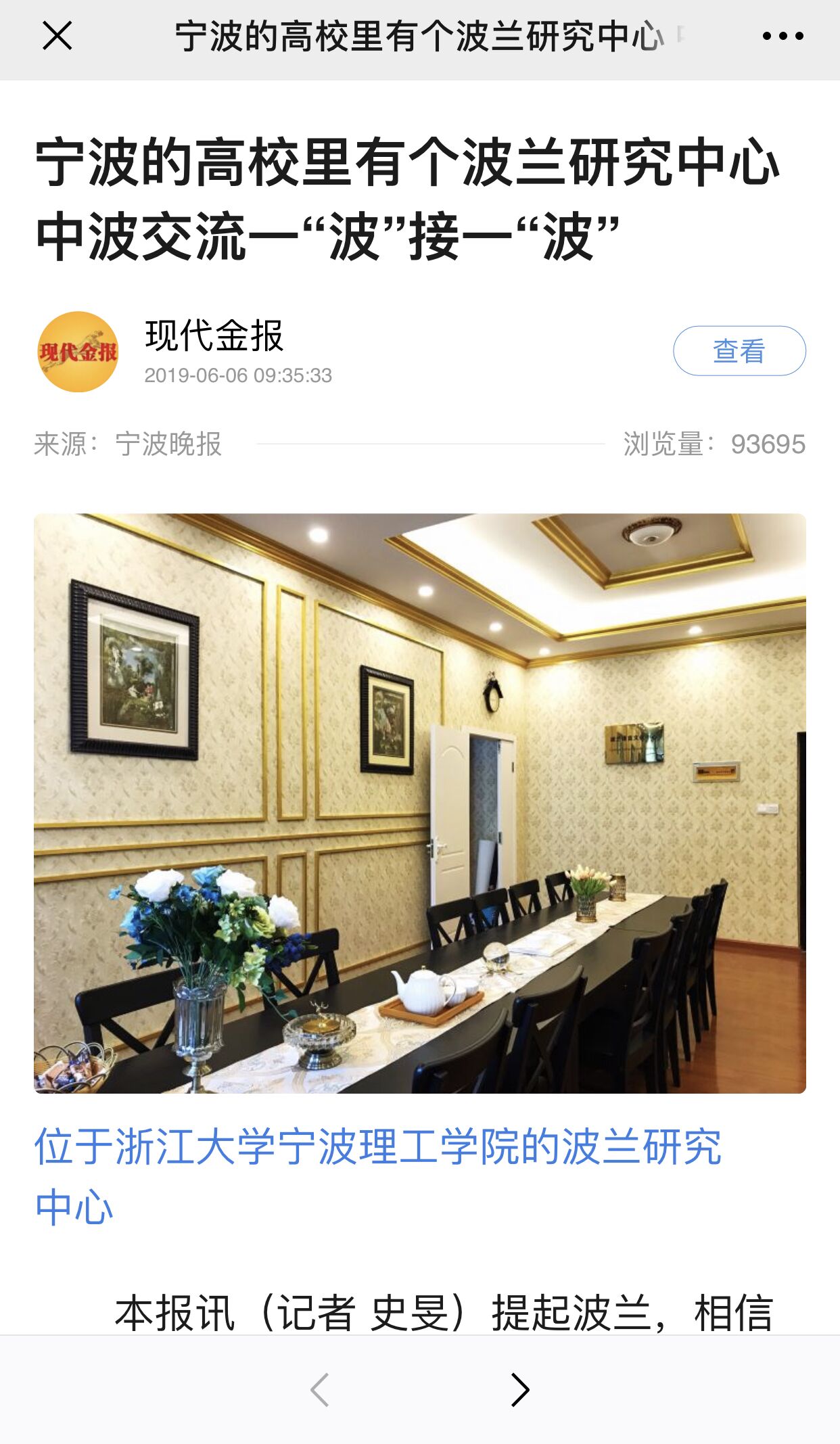 2019年5月31日,宁波日报集团史旻记者到访波兰研究中心,中心副主任陈黎峰副教授接待了史旻记者并接受了她的相关采访。史记者说,今年6月8日-12日,宁波将迎来首届中国-中东欧国家博览会暨国际消费品博览会。作为“一带一路”节点城市,宁波积极参与“一带一路”建设,在经贸、人文等方面,与中东欧结下了“不解之缘”,在中东欧国家的影响力持续提升。在这样的大背景之下,报社对我校的波兰研究中心表现出了极大的兴趣,觉得有必要让全社会了解作为中国-中东欧联系纽带的波兰研究中心的工作。