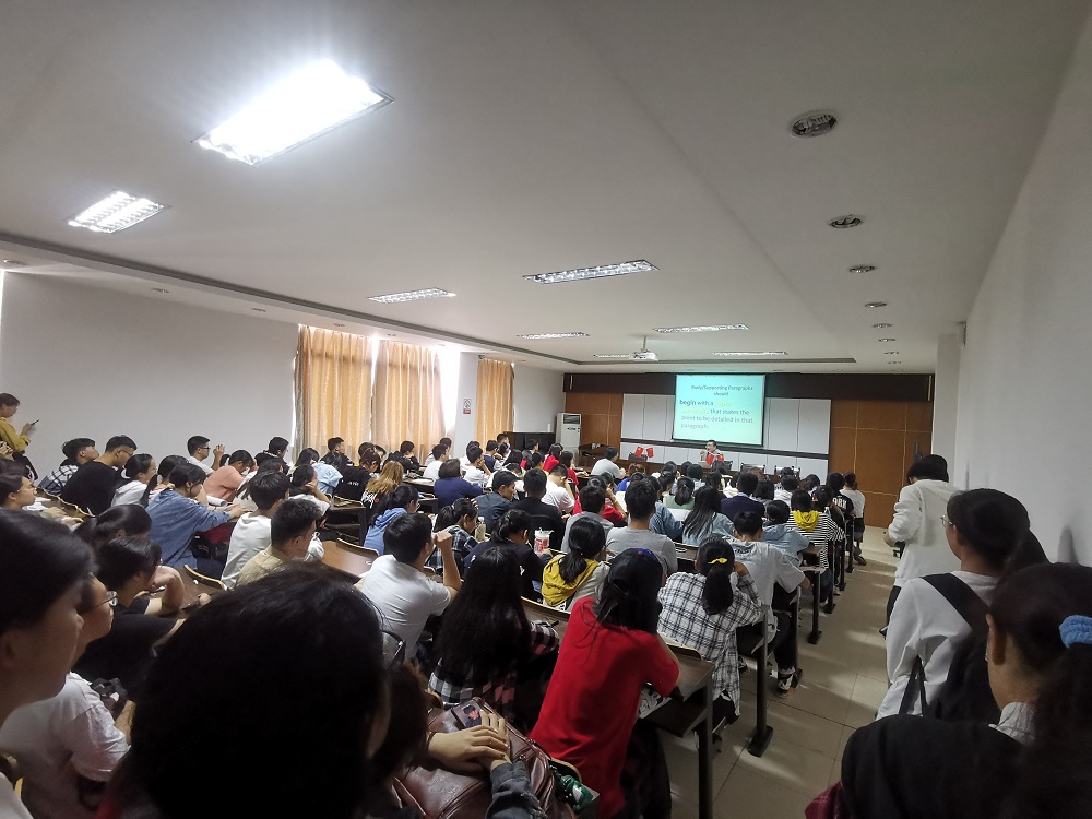 10月12日中午,外国语学院应用语言研究所教工第二党支部在SC405开展“新中国七十年,礼赞新时代之英语加油站” 大学英语四级的志愿宣讲活动。该活动是专门针对首次参加考试2019级新生而开设。现场近两百名学生参与了交流互动。