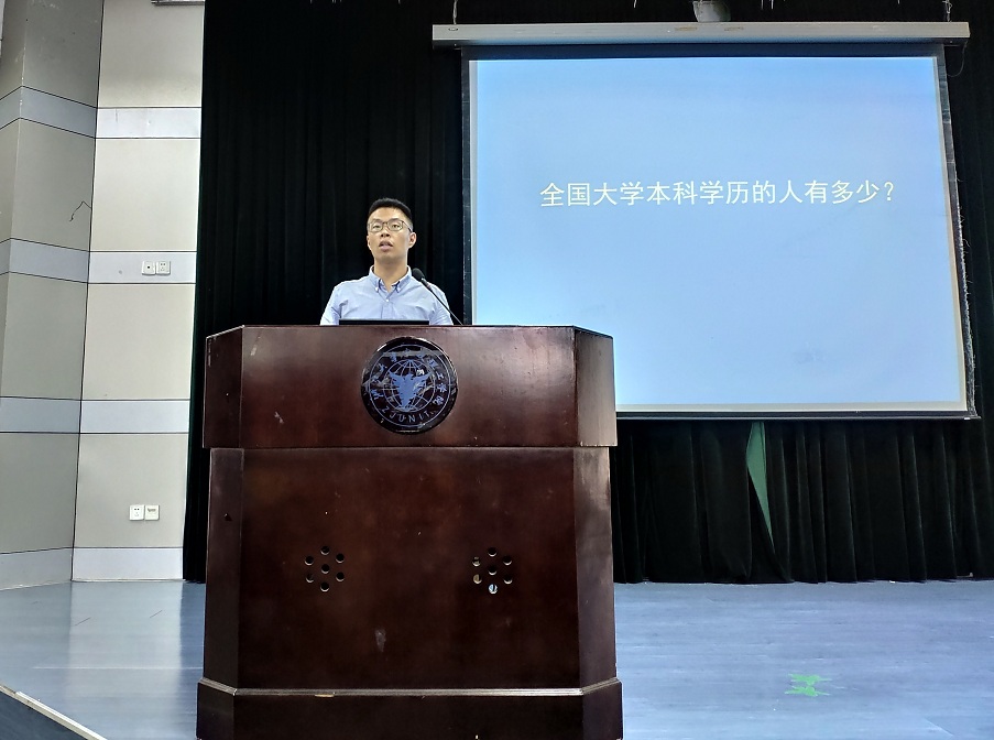 首先,由刘杜娟老师就期末的相关学生工作进行说明,她指出,本学期即将结束,期末考试与暑期社会实践活动也随之而来,希望同学们积极投入复习,备战考试,另外也提醒同学们在社会实践活动中时要注意人身和财务的安全,警惕诈骗,时刻把安全放在第一位。紧接着,刘杜娟老师向同学们详细说明了奖学金的申请方式,同时也重申了学校对于违纪违规行为的相关处分条例,提醒同学们不要触犯校纪校规,做到诚信考试。之后,任凯老师通过例举实证数据,就学院学科的特点及学生个人职业发展规划进行了深入分析和说明,他强调,同学们要努力抓住机会、创造机会,提升自己的能力,同时,他还建议同学们应尽早做好学业规划以及职业规划,查找相关资料,提前做好准备,对自己的人生负责。