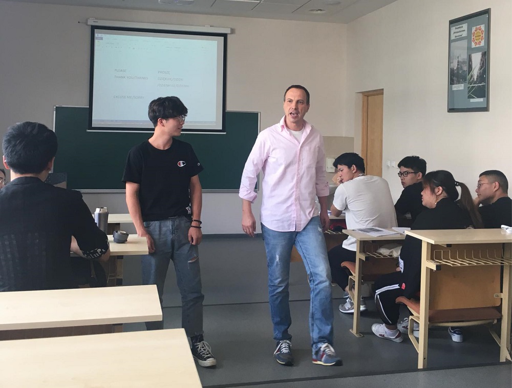 7月10日,外语学院与生化学院的同学们在我校两位老师的带领下,根据波兰校方的安排开始了第一天的行程。早晨九点,波兰校方早早为学生准备了美味可口的早餐,丰富的种类给了学生更多的选择。之后便迎来了上午为时两个小时的语言课,课堂上,波兰老师生动幽默,用通俗易懂的的例子来帮助学生更好地学习波兰语。在波兰语里面对于舌头卷翘度的要求较高,老师言传身教,通过深情并茂的演绎让学生能够更快的理解。而学生们则聚精会神,随时跟随老师的步伐。