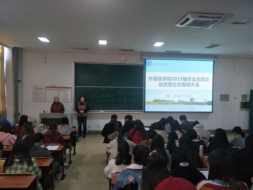 11月,对于就业以及论文指导工作来说,已经全面拉开了序幕。外国语学院各类活动纷纷启动,“就业指导宣传月”为同学们准备了企业家讲座、面试技巧、小型招聘会、就业座谈会等各类活动。