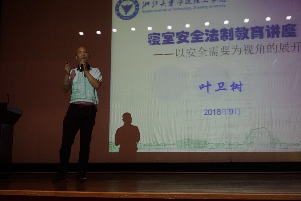 其次,法政学院辅导员李老师主要对学校的评奖评优和学生违纪处分实施办法进行了详细说明。讲座的最后,由保卫处副处长叶老师对新生们进行人生安全教育讲座。叶老师的讲座主要包括近年常见的“面对面诈骗”、“非接触诈骗”。以身边真实事例,叶老师运用生动风趣的语言为大家讲述了关于安全防范的知识,通过PPT图片展示,分析事因,告诫大家如何防范身边的诈骗、偷窃行为,对于同学们的安全也提出了由衷的忠告。