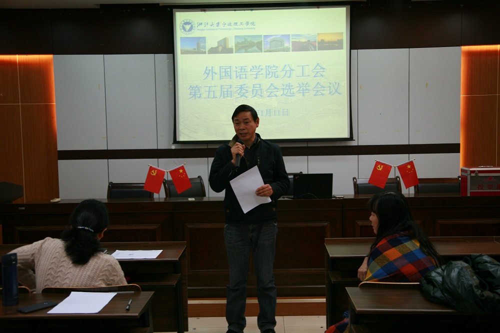 根据《理工工会〔2019〕1号关于认真做好分工会换届选举工作的通知》,依照《中国工会章程》、《工会基层组织选举工作暂行条例》,2019年1月11日,外国语学院分工会举行了第五届委员会选举大会。会议由第四届委员会委员李飒主持。选举前,分工会第四届委员会代主席叶琴法向大会作了第四届委员会财务报告和工作报告,然后对按程序产生的建议名单上的第五届委员会候选人进行了无记名投票,结果刘杜娟、叶琴法、阮征、李飒、曹雅娟五名会员获选,并已报外国语学院党总支委员会会议通过。