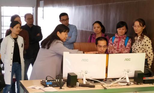 首先大娱号科技有限公司陈工程师给大家详细地介绍了“微课制作”和“外语情景模拟实训”系统的软件界面及操作流程,并就制作过程中经常遇到的问题具体给老师们进行了演示。活动现场气氛热烈,有的老师就自己在课堂中所要完成的教学内容向技术人员请教了慕课制作的方法,也有老师分享了自己慕课制作的经验。在随后的实践环节中,老师们充分体验到了现代信息技术在辅助教学中的魅力,整个实验室里充满了欢声笑语。
