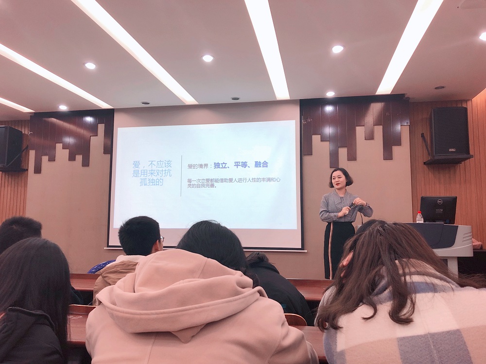 浙江大学宁波理工学院外国语学院主办的女生节特别活动“爱的艺术”心理讲座于2019年3月6日晚在NC103举行。