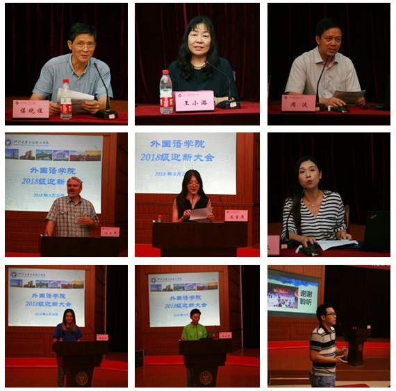 最后,所有到会的老师分别为2018级新同学赠言,希望他们在大学四年里养成良好的学习和生活习惯,做一个乐观开朗、积极向上的新时代大学生。师长们谆谆的教导、诚挚的祝福再次赢得了同学们热烈的掌声。在新的学期,新的起点上,2018级新生开启新的希望,承载新的梦想,相信在外国语学院全体师生的努力下,必会赢得更加灿烂辉煌的明天。
