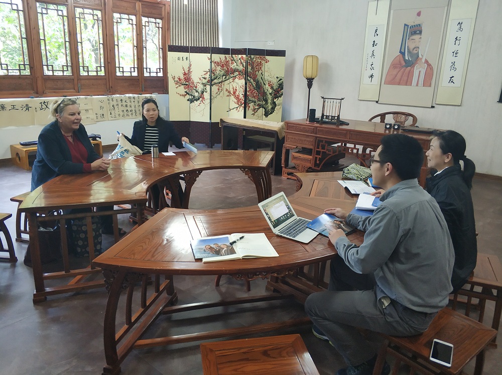 2018年10月31日下午, 英国普利茅斯大学(Plymouth University)的国际部中国区经理Nicola Seth和普利茅斯大学中国项目联络人Rebecca Peng一行来访浙江大学宁波理工学院外国语学院,期间,双方就深入校际合作、推进商务英语专业国际人才培养,开展3+1+1双学位项目等方面进行了讨论,达成了共识。学校外事处章瑶老师、外国语学院商务英语专业的廖家栋老师、项目协调人丁旭老师、肖琪老师在阳明学堂接待了英国来宾。