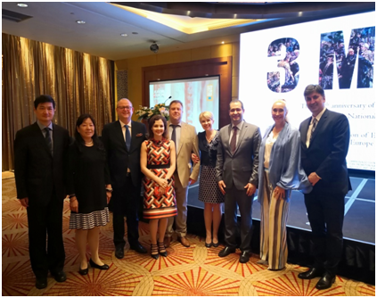 庆祝活动上,我校代表不仅与波兰驻上海总领馆大使Piotr Nowotniak及其夫人合影留念,还主动与出席庆祝活动的其他国家驻上海总领事进行接触交流,积极寻求拓展我校与“一带一路”沿线国家高校的合作机会。