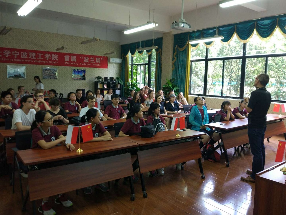 为进一步促进我校“波兰研究中心”搭建中波友谊和文化的桥梁,在首届“波兰周”期间,由我校外国语学院和宁波外国语学校(以下简称“宁外”)共同举办的“中波中学生语言文化课程”在波兰研究中心隆重举行。来自波兰的15名中学生与宁外15名中学生共同参与了此次活动。本次活动由我校外语学院卜霄艳老师和宁外的黄伦玲老师共同主持,课程由我校波兰籍教师阿图尔博士主讲。