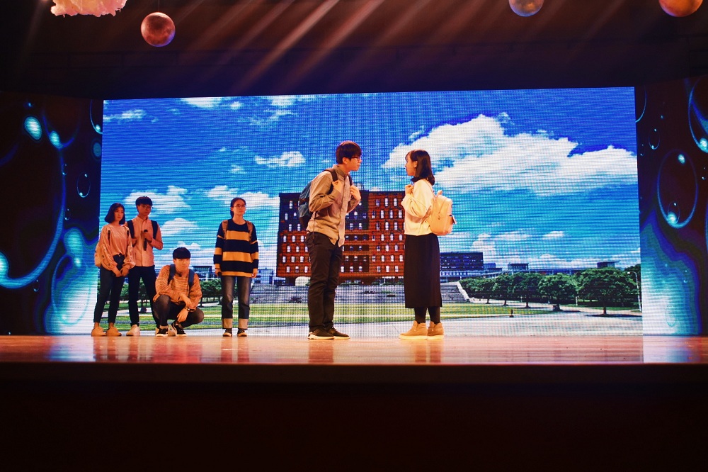 晚会由“遇见.如木向阳”、“追逐.如影向光”、“青春.如鲸向海” 3个篇章组成,外国语学院的学生分别带来了轻快劲爆的舞蹈《Do it》、小品《地铁故事》、萨克斯独奏《Faded》、舞台剧《童话里都是骗人的》、舞蹈串烧《B&A》、口技特色表演《青春物语》、魔术《前世今生》、三语歌曲串烧《残酷天使 & My Love》、小品《如果梦》、手语表演《和你一样》等丰富多彩的节目。据悉,本次晚会绝大部分的节目都是由2017级新生和高年级的同学合作共同完成,展现了学院2017级新同学们迈入校园的向往与美好期待,充满了朝气与活力。其中,三叶草生命关怀志愿服务团队和阳明.乐咖啡团队的静默咖啡师一起表演的手语《和你一样》深深地打动了现场无数观众,可谓天地有大美,大美寂无声,赢得了阵阵热烈掌声。