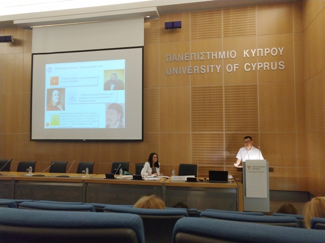 近日,由浙江大学外国语言文化与国际交流学院及我校外国语学院联合组成的代表团应邀于6月8-11日参加在塞浦路斯首都尼科西亚举办的第八届跨文化语用学与跨文化交际国际会议。本次会议由塞浦路斯大学和跨文化教育活动欧洲联盟共同举办。在为期四天的盛会中,共有来自世界40多个国家的近160多位学者在大会高层论坛和分组论坛中分享了各自在跨文化和语用学领域的最新研究成果。我校9211特聘教授外国语学院院长王小潞博士和外国语学院副院长蔡亮博士在大会高层论坛中分别做了“一带一路”视野下中国的波兰研究和“行学至善:王阳明教育哲学的跨文化教学实践”主题发言。