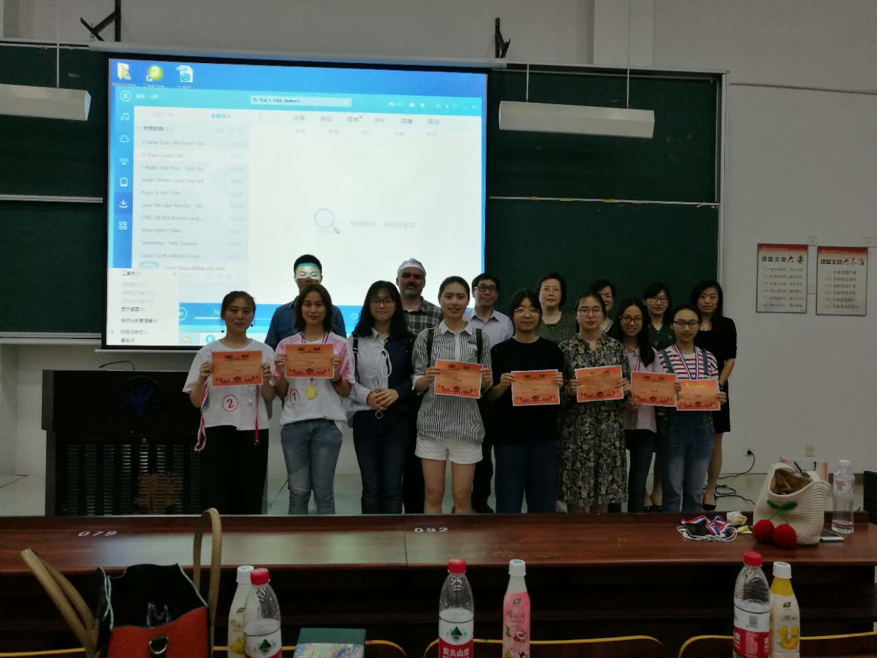 5月15日晚,外国语学院2017年“与声俱来.英你精彩”英语配音大赛决赛在NC102举行。外教Andy Brennan、专业教师王雪芹、魏健、陈俊林、李飒五位老师担任评委,学院团委书记芦美丽、2015-2016级学生代表出席并观看了比赛。