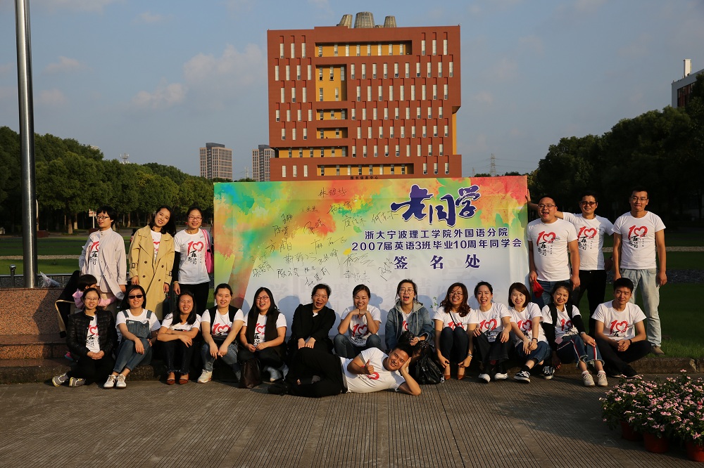 金秋十月,丹桂飘香。10月21日,浙江大学宁波理工学院外国语学院2007届英语3班同学们重返母校,举行毕业10周年同学会。