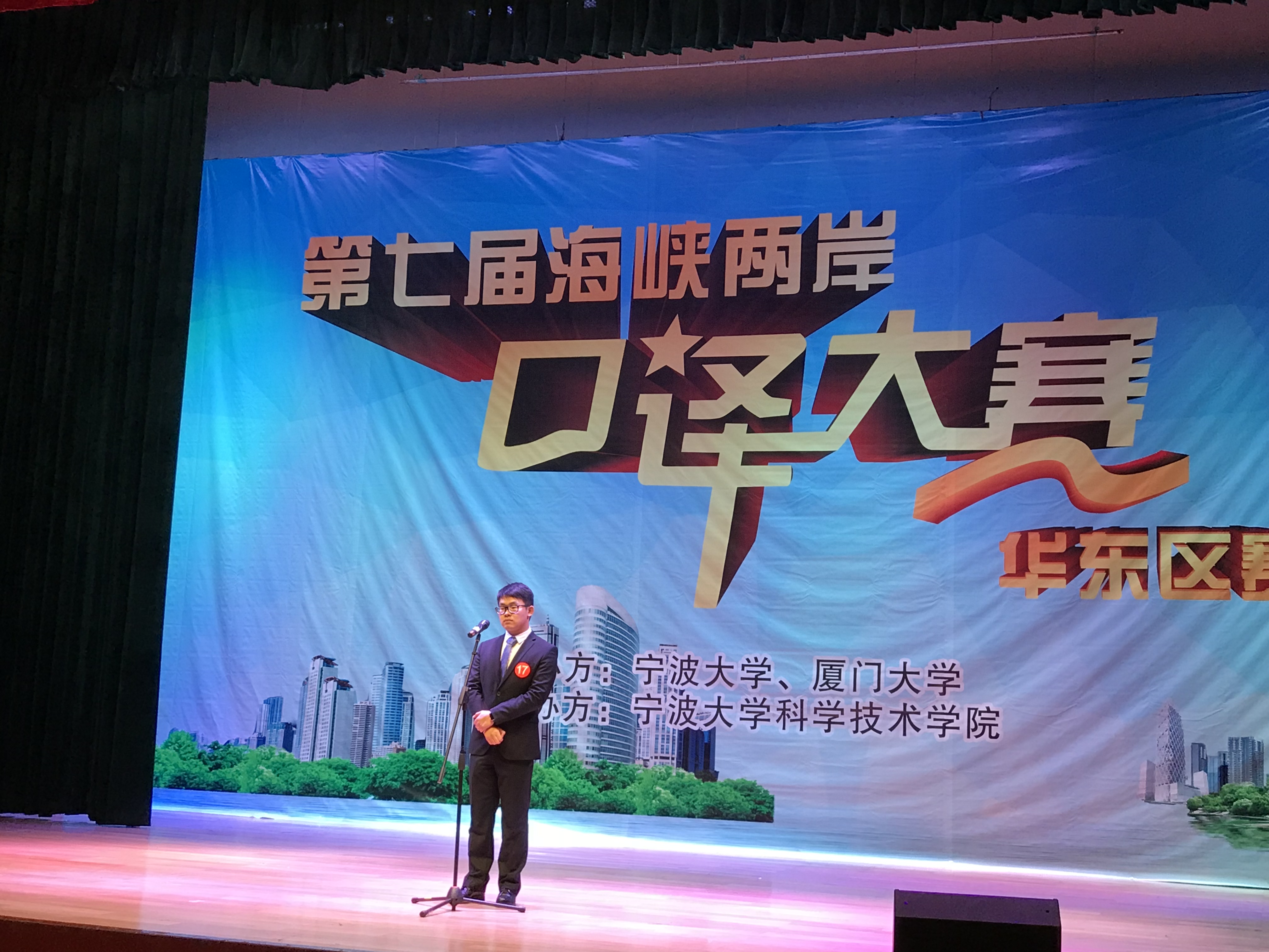 在刚刚结束的第七届“海峡两岸口译大赛”华东区比赛中,外国语学院英语141厉修远和英语151杨舒婷两位同学以稳定的发挥,分别获得一等奖和优胜奖。同时,厉修远同学将代表华东区选手进军全国总决赛。