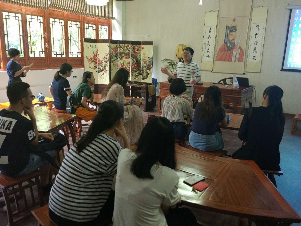 6月28日上午,美国罗切斯特拿撒勒大学英语语言学院院长、亚太办公室主任宋红专教授特意在紧张的行程中抽出时间来和我院学生交流,意为促进和我院的合作项目。学院外事秘书肖琪老师,项目协调人曹雅娟老师,阮征老师在阳明学堂接待。宋教授为中国学生“如何在美国大学教育中独占鳌”出谋划策,也耐心地为暑期出访各英语国家的学生解答。